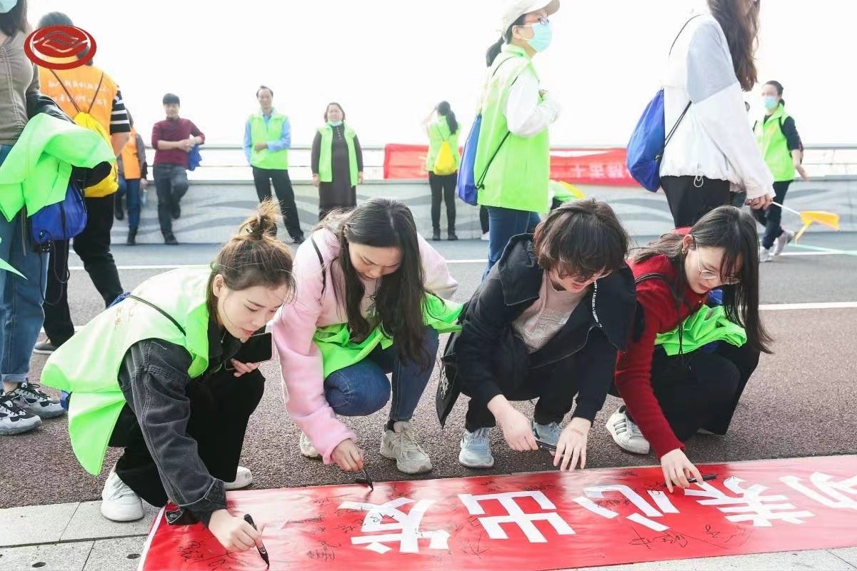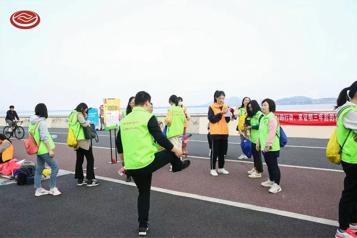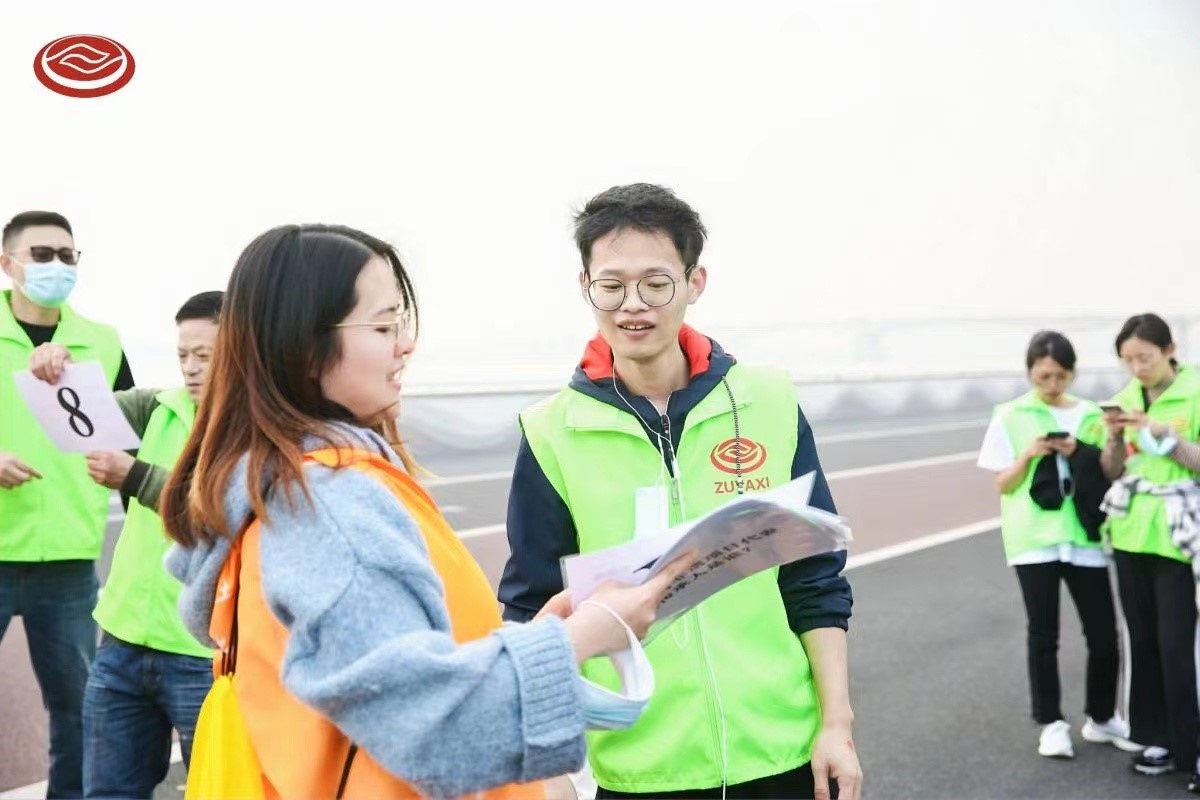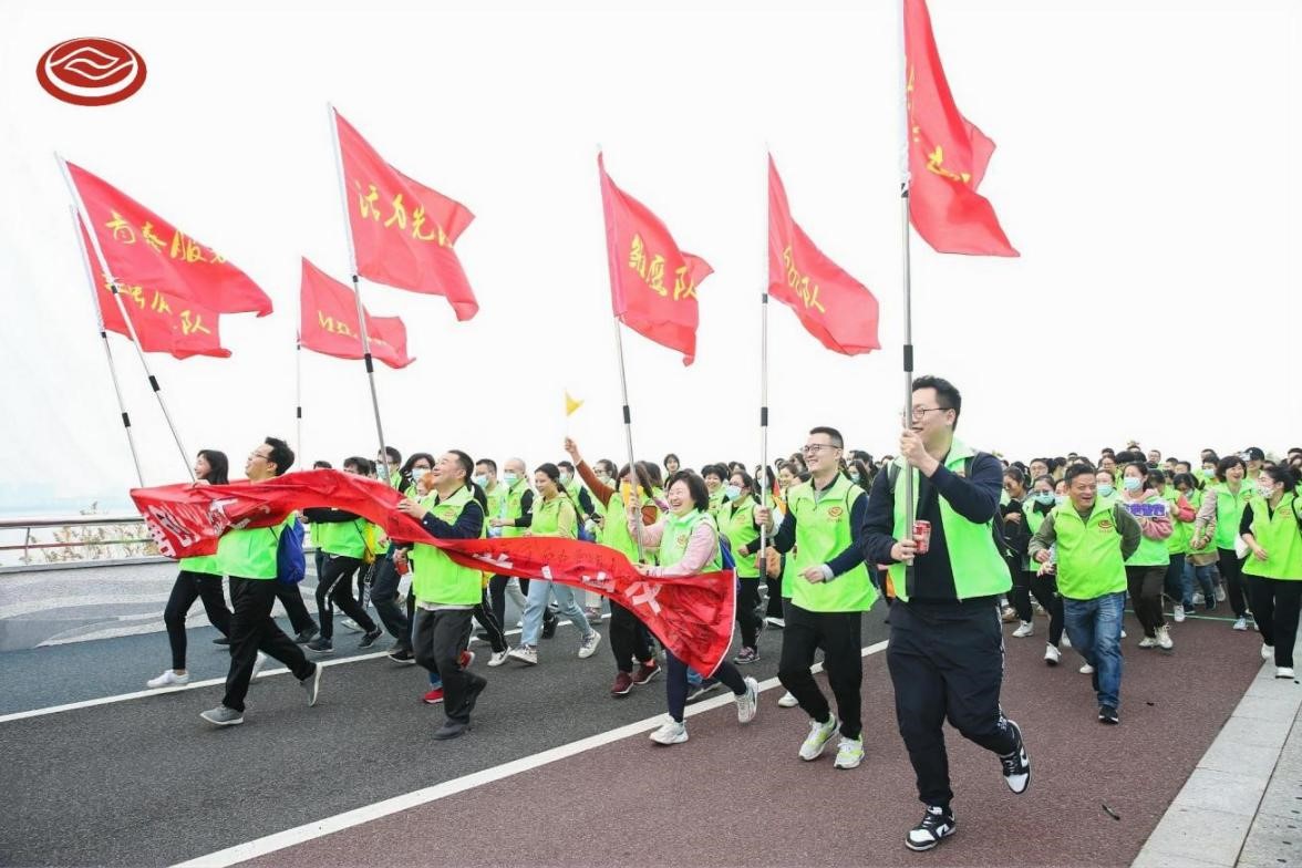 一聲發令槍響,七支隊伍如錢塘江潮水般奮勇向前,浩浩蕩蕩向前出發! 此次活動半程點及終點設有趣味游戲環節,不僅增加了活動的趣味性,也增強了團隊凝聚力。大家在交流中、歡笑中、合作中,不知不覺到達終點。