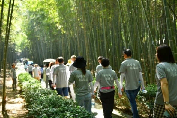 上午我們到達活動的第一站——桐廬大奇山國家森林公園。驕陽似火,猶如大家的熱情一樣。一進大奇山,便是一片竹海,大家在青翠流動的竹海中,走棧道,搖索橋,攀石壁,涉溪水享受閑情雅致。