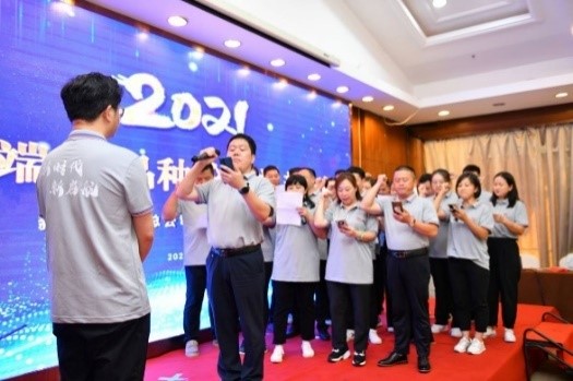 下午1時許,本年度新藥學服務總公司四年聯(lián)動誓師大會如約開始,李邦良董事長通過視頻發(fā)表講話給予營銷團隊肯定及期望。接著新藥學服務公司總經(jīng)理鮑銀杰圍繞“全終端、全品種、全覆蓋、新啟航”的主題,針對2021年風起云涌、競爭激烈的醫(yī)藥市場給予各銷售團隊指導意見,鮑總還給出管理干部的六條職責和能力培養(yǎng),對公司的骨干進行指導。對于公司的未來發(fā)展鮑總也給出了發(fā)展目標,指明方向、確立信念。各大區(qū)團隊依次上臺宣誓,立志腳踏實地、眾志成城;齊頭并進,多樹標桿,爭取非布快上量,不拘一隅,多方協(xié)作,布局米拉搶先機;下沉基層,精耕細作二三終端建渠道;公司藍圖已描繪,咬定青山不放松!
